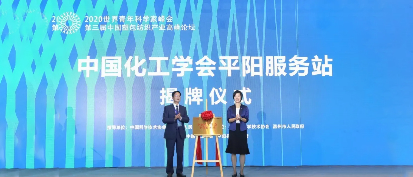 中國化工學(xué)會與平陽縣人民政府也達成深度合作,中國化工學(xué)會副理事長李良君、平陽縣縣長黃慧共同為“中國化工學(xué)會科技經(jīng)濟融合發(fā)展平陽服務(wù)站”揭牌?!爸袊W(xué)會將積極發(fā)揮優(yōu)勢,探索助力平陽縣塑包紡織產(chǎn)業(yè)創(chuàng)新發(fā)展的新思路和新模式,促進塑包紡織產(chǎn)業(yè)的科技成果轉(zhuǎn)化和轉(zhuǎn)型升級?!敝袊W(xué)會副理事長李良君表示。